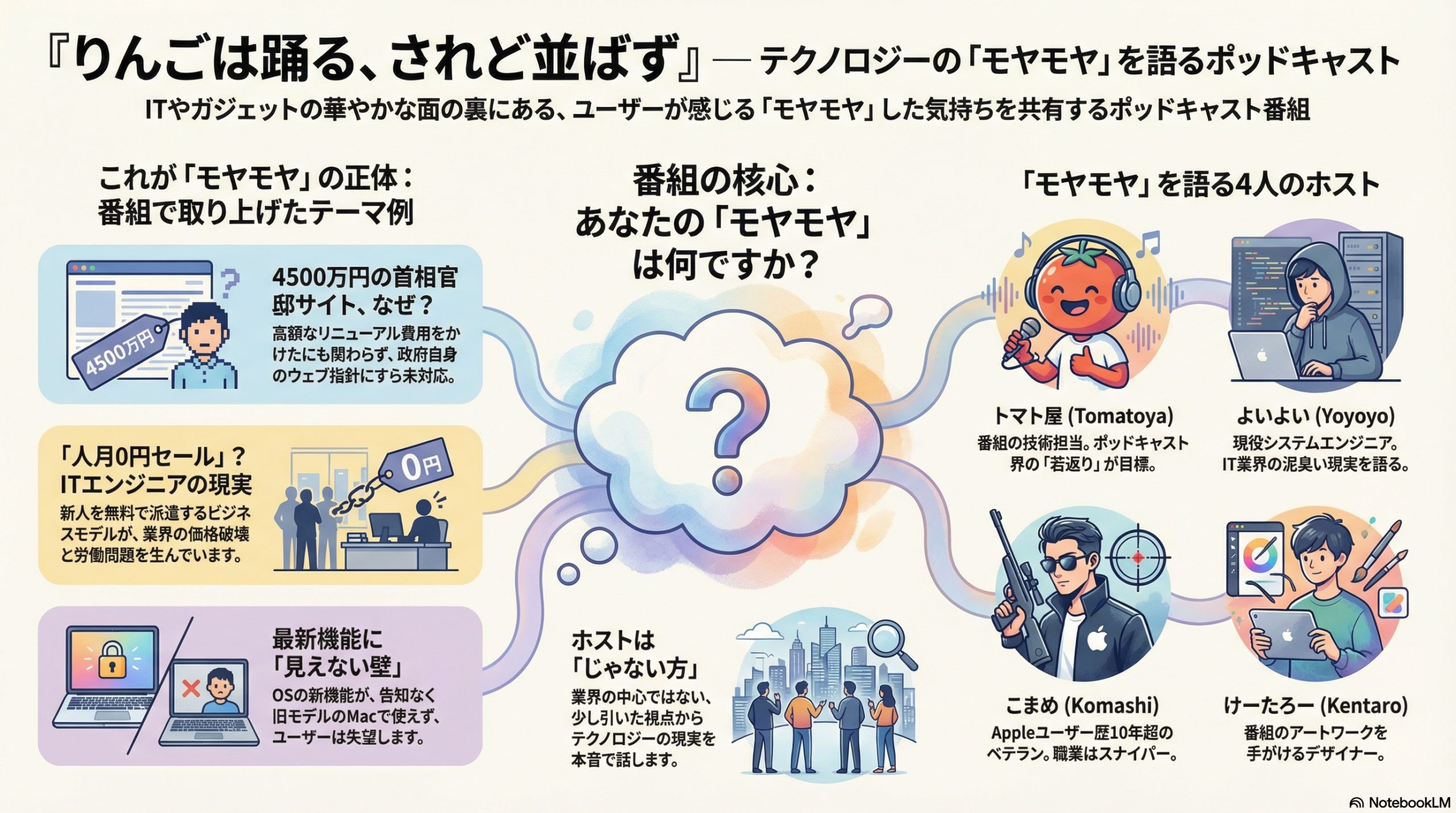 NotebookLMが01回〜20回の番組を聴いて描いてくれました。